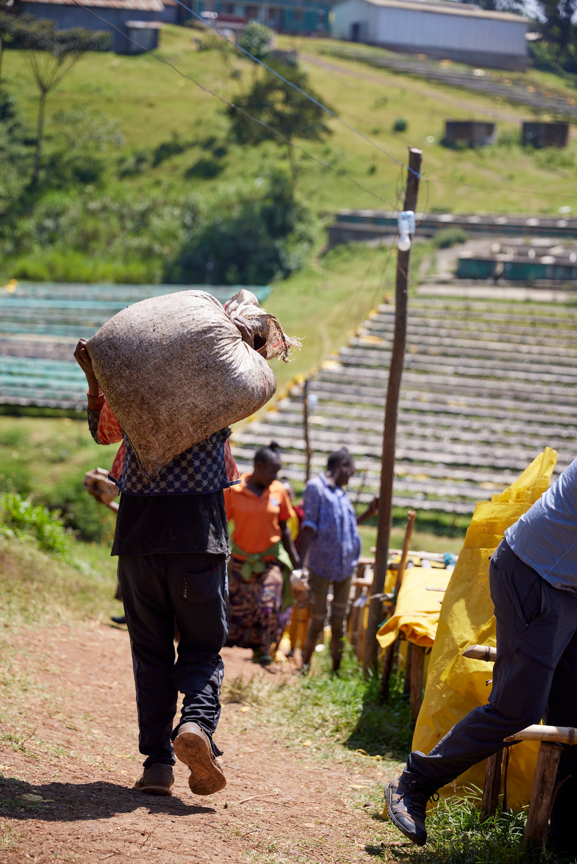 The process of producing Washed coffees in Ethiopia will vary slightly from washing station to washing station, but generally speaking the coffee is picked ripe and depulped the same day. There is usually a fermentation period of 8–12 hours in open-air tanks, then washed in water channels to remove the mucilage. The coffee seeds will be spread on raised beds to dry for 5–15 days, depending on the weather.